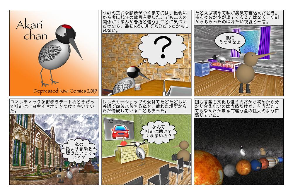 Kiwi and Akari Lives of an aspie and a neurotypical New comics monthly In English🇳🇿&Japanese🇯🇵 自閉症スペクトラムの夫と妻の日常を 日本語と英語の漫画で綴っています